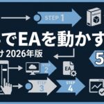 ※本記事の情報は2026年4月時点のものです。スプレッド・ロスカット水準・ボーナス条件等は変更される場合があります。最新情報は各ブローカーの公式サイトでご確認ください。本記事はEAの運用成果を保証するものではありません。過去の実績は将来の成果を保証しません。EA投資にはリスクが伴います。投資判断はご自身の責任において行ってください。